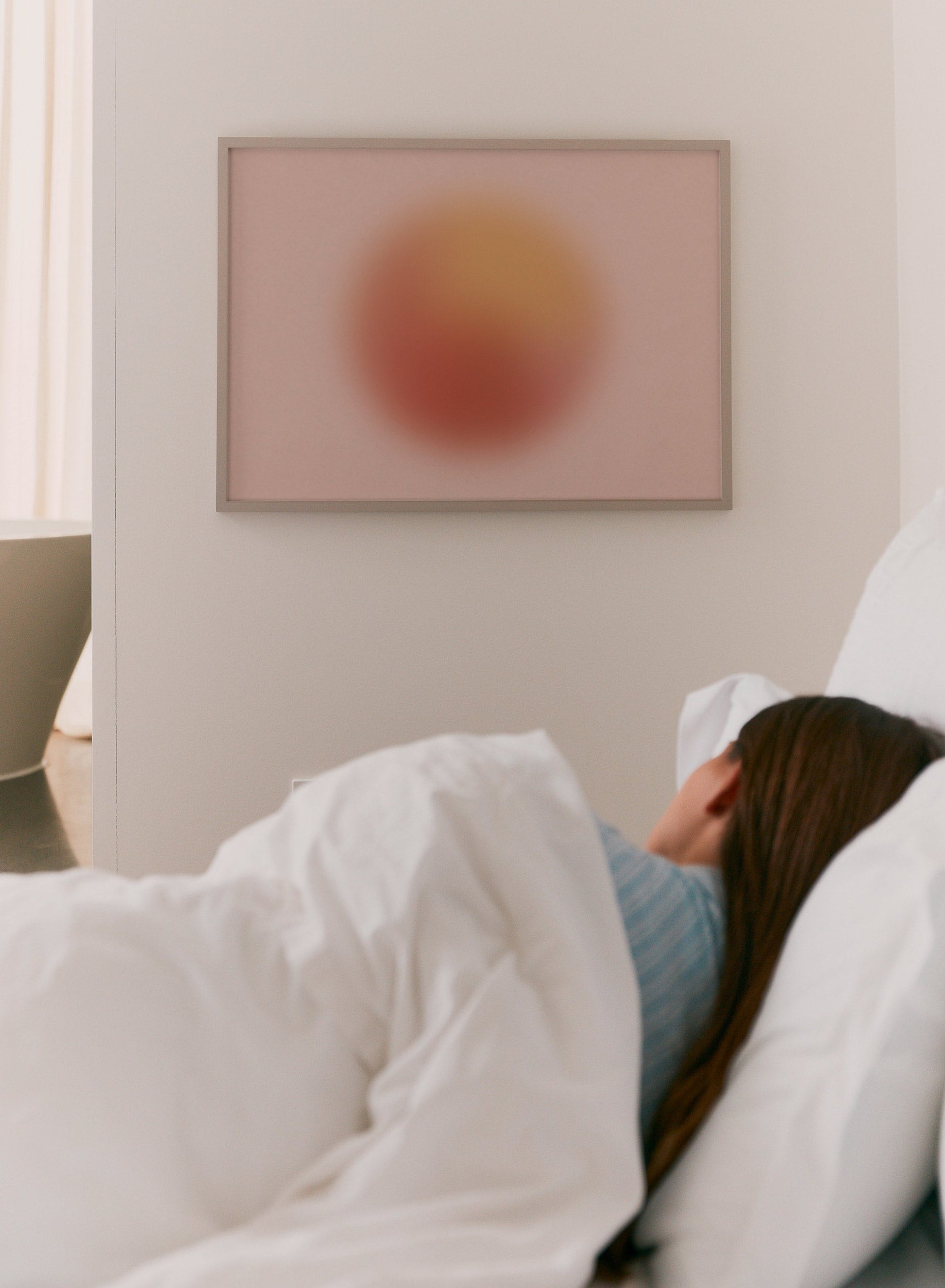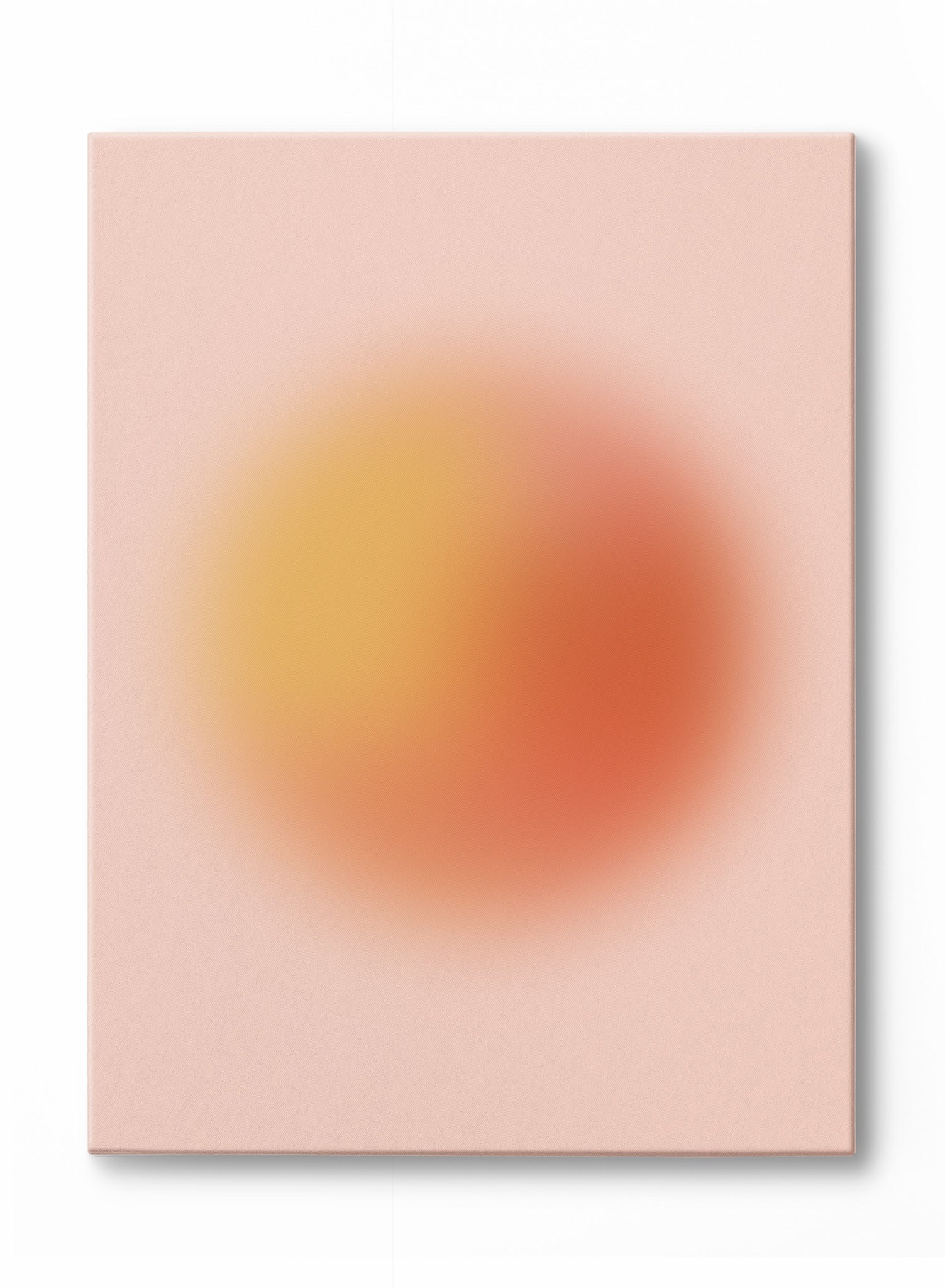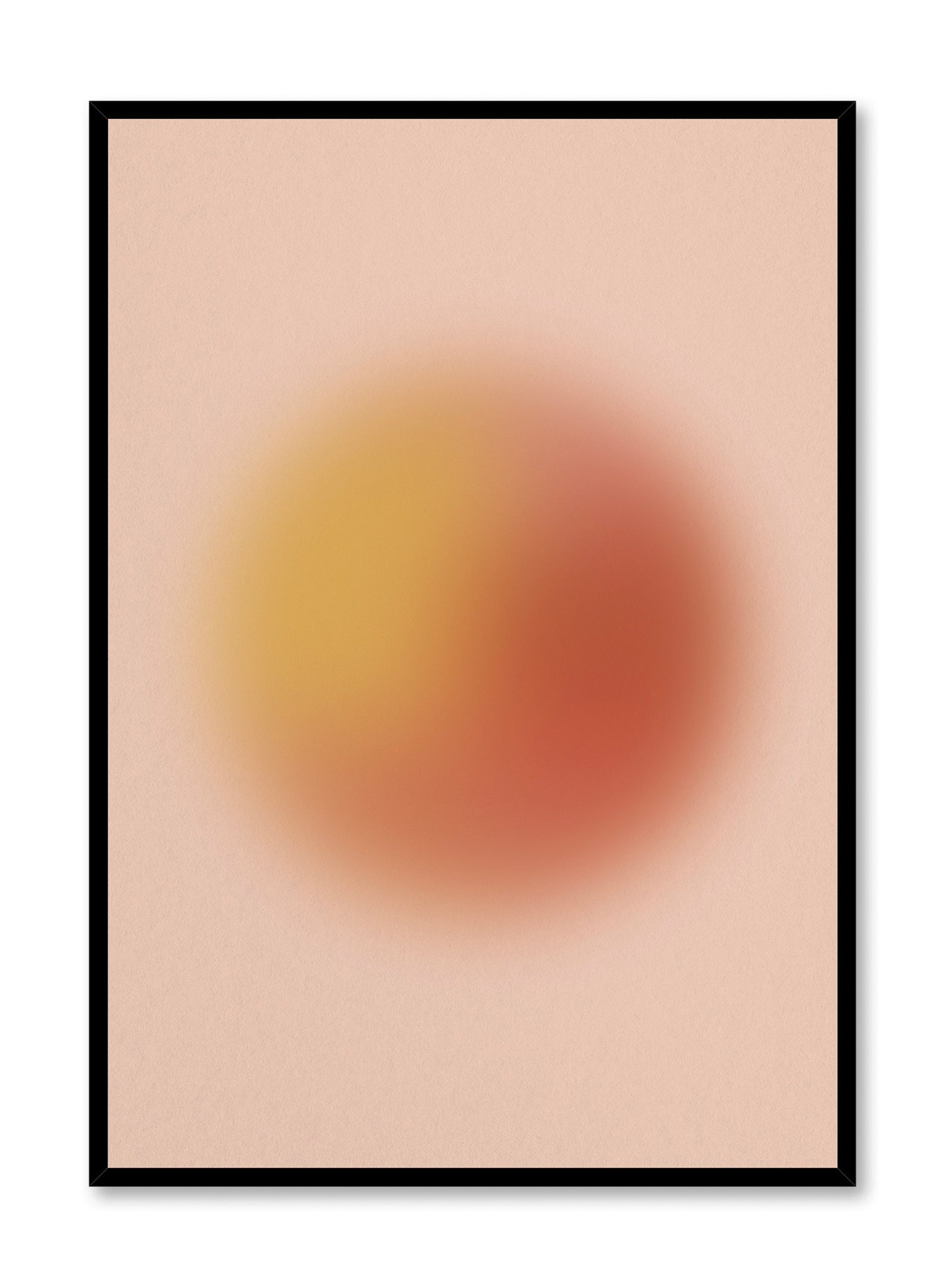 Infuse a little fun in your decor with 'Bubbly in Blush': a playful abstract print featuring a bold and blurry orange sphere layered over a baby pink background.